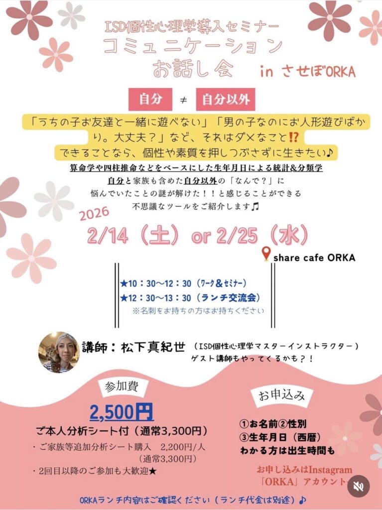 ⭐️ ISD個性心理学 導入セミナー&コミュニケーションお話し会 in させぼORKA